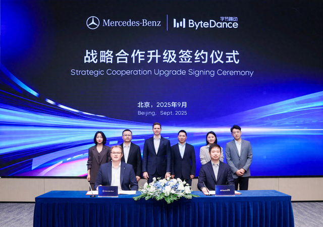 9月23日,梅赛德斯-奔驰(中国)投资有限公司与北京字跳网络技术有限公司宣布签署升级战略合作备忘录,顶峰相遇,守正拓新,在坚持“奔驰标准”的同时,共同推动人工智能(AI)技术的跨业务融合,树立汽车产业数智化创新合作的新典范。